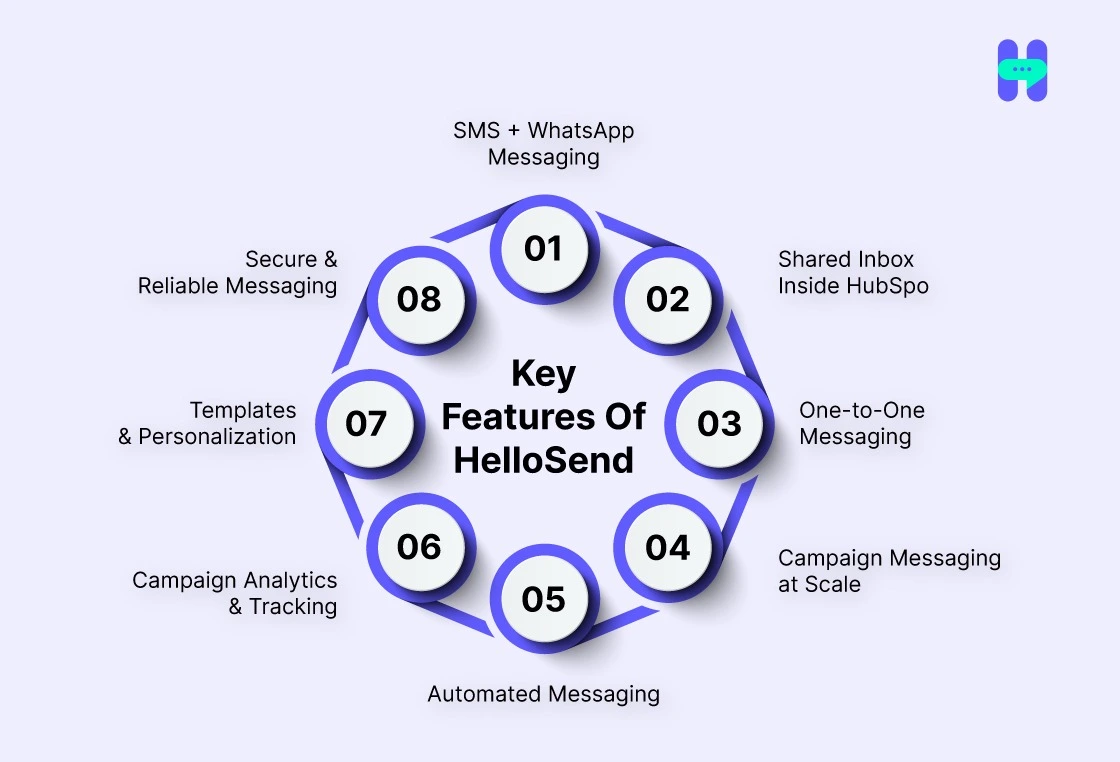 - Campaign Messaging at Scale: Launch targeted SMS and WhatsApp campaigns using HubSpot contact filters or imported lists. HelloSend keeps every outreach tied to the correct CRM record and tracks delivery and responses in real time.